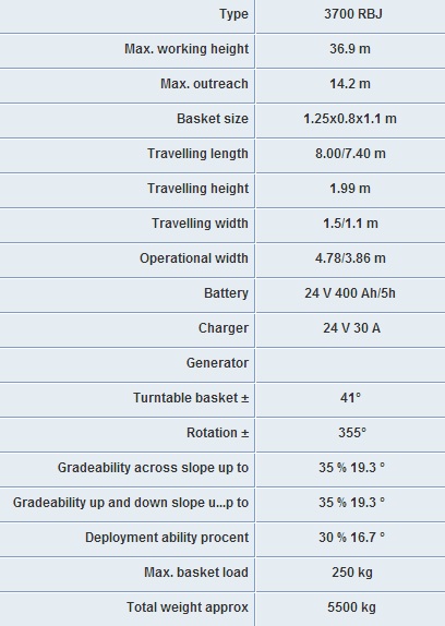 Max. working height 37 m